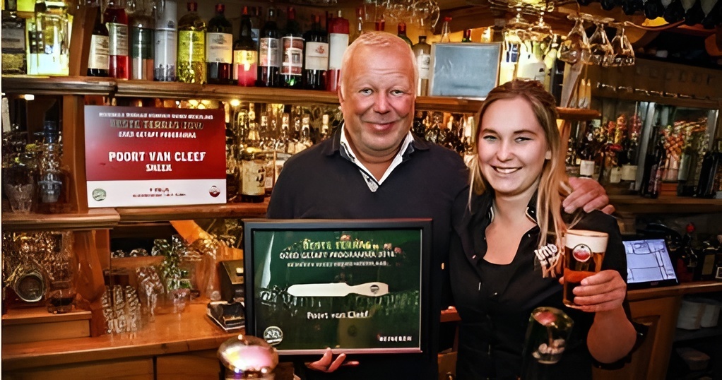 Sneek – Café-Restaurant Poort van Cleef in Sneek is uitgeroepen tot de horecazaak met het beste terras van regio Noord-Nederland, georganiseerd door Heineken en onderdeel van het Goed Getapt kwaliteitsprogramma van de bierbouwer. Als prijs ontvingen eigenaren Jan en dochter Anouk van Omme de Gouden Spatel van Gerlof Leystra, Accountmanager regio Noord-Nederland.Café-Restaurant Poort van Cleef is meerdere keren beoordeeld door mystery guests en blinkt uit in gastheerschap, service en bierbehandeling.